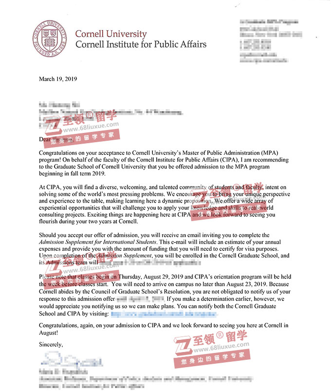录取结果:Cornell University,Master of Public Administration 康奈尔大学MPA