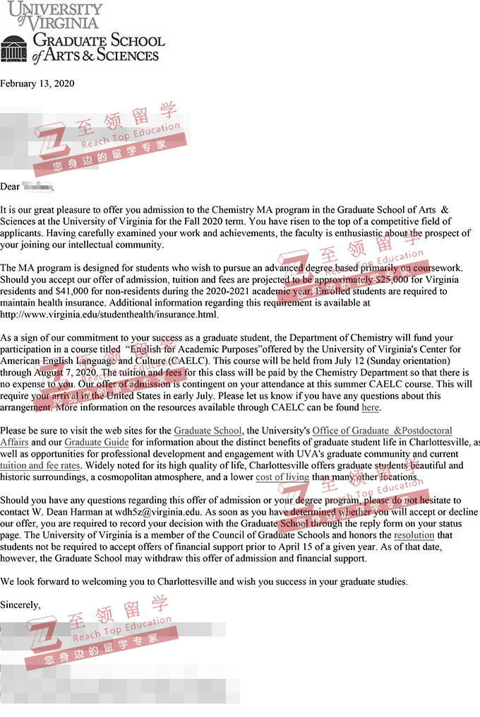 录取结果:University of Virginia,Chemistry MA program弗吉尼亚大学化学硕士录取