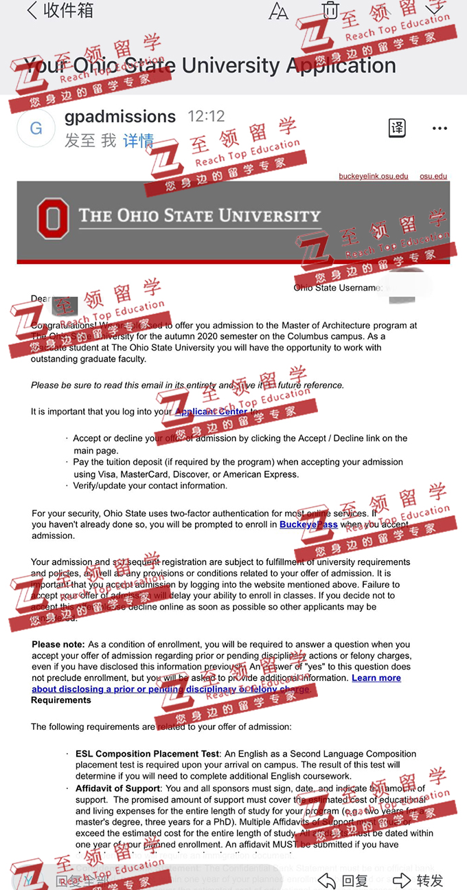 录取结果:OSU,Master of Architecture俄亥俄州立大学建筑学硕士录取