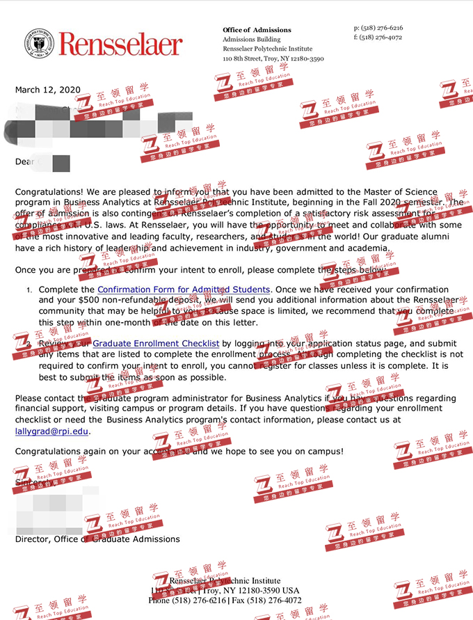 录取结果:Rensselaer Polytechnic Institute,MS in Business Analytics伦斯勒理工学院商业分析硕士录取