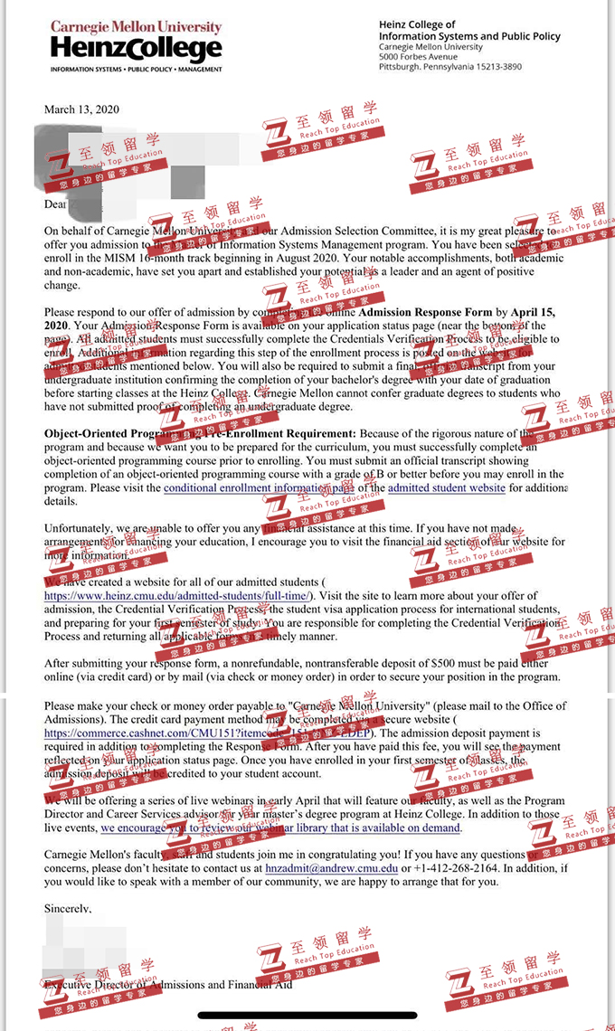 录取结果:CMU,Master of Information Systems Management卡内基梅隆大学信息系统管理硕士