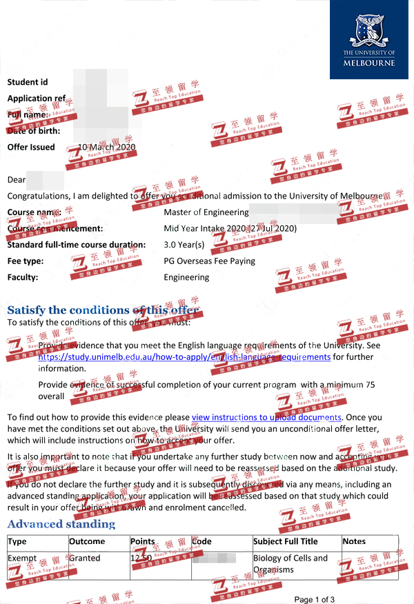 录取结果:University of Melbourne,Master of Engineering (Biomedical)墨尔本大学生物医学工程硕士录取