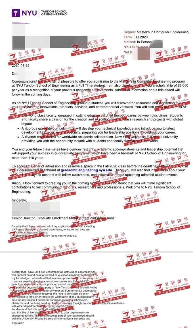 录取结果:New York University,Master's in Computer Engineering纽约大学计算机工程硕士录取,奖学金$6000/年