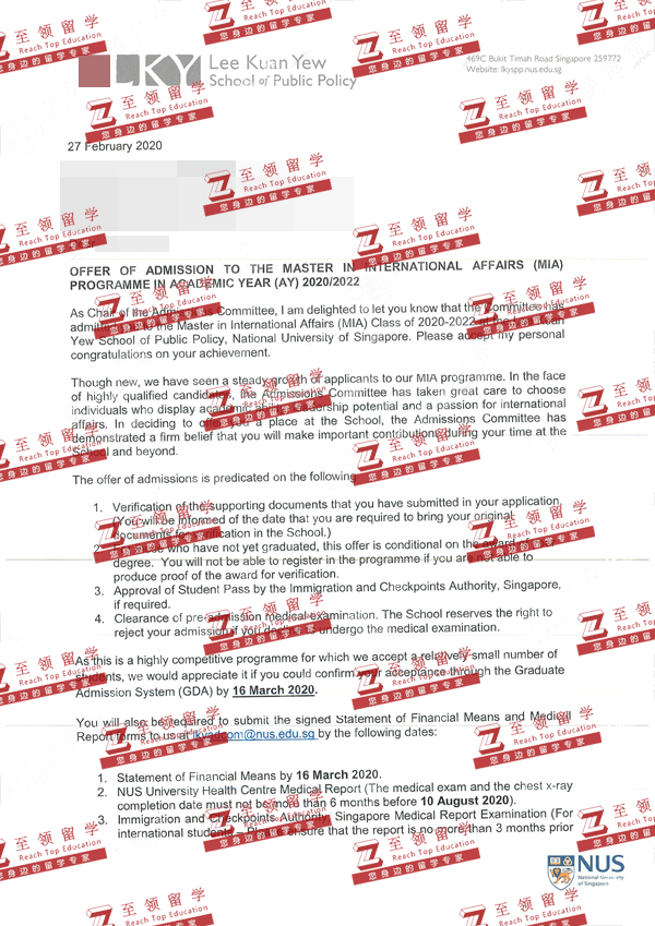 录取结果:NUS,Master in International Affairs新加坡国立大学国际事务硕士录取