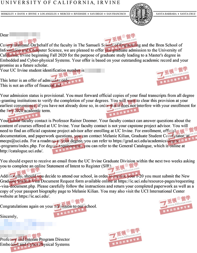 录取结果:UCI,Master of Embedded & Cyber-physical Systems加州大学欧文分校嵌入式与网络物理系统工程硕士录取