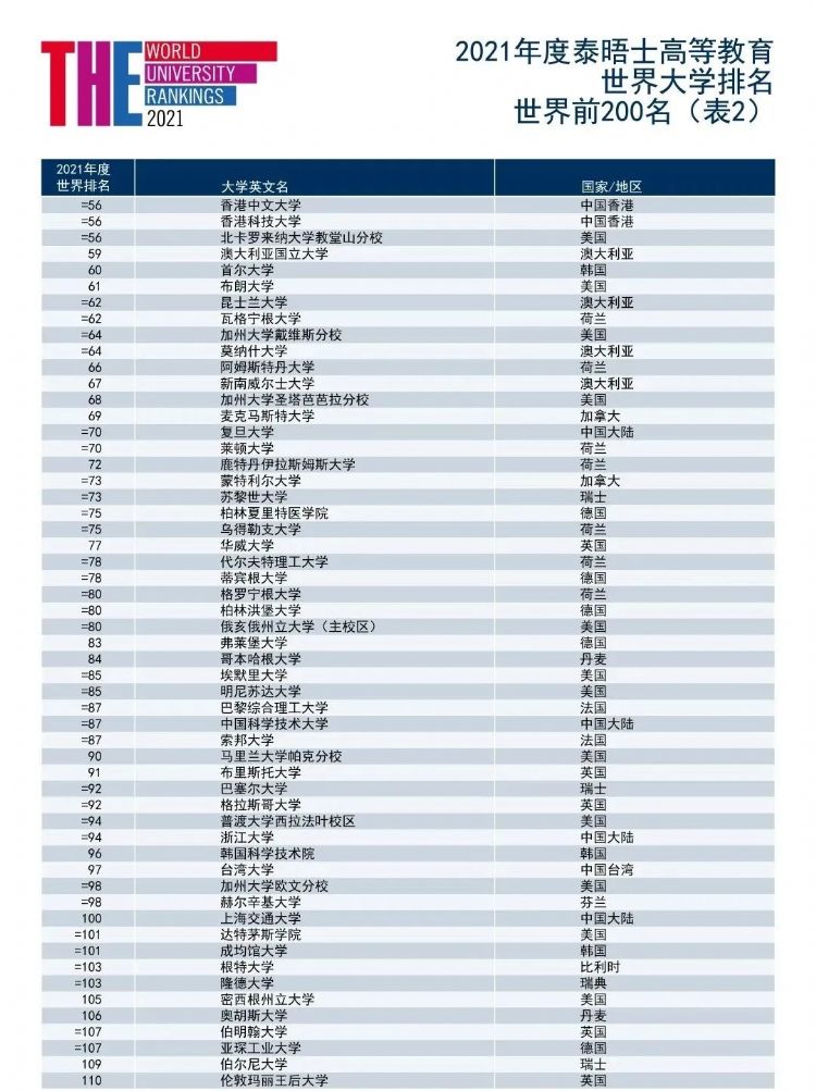 北京时间9月2日,2021年泰晤士世界大学排名重磅发布!
