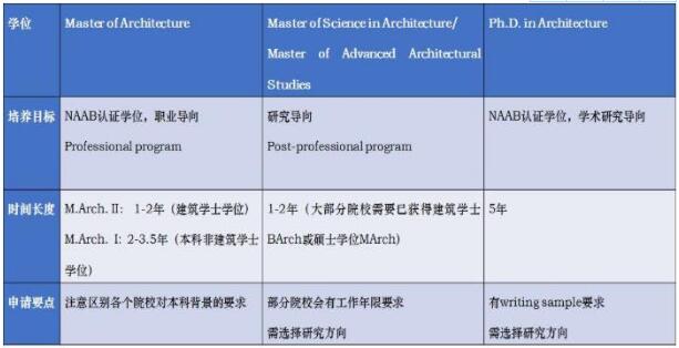 美国建筑研究生学位简介(各个学校名称略有不同,请注意区别)