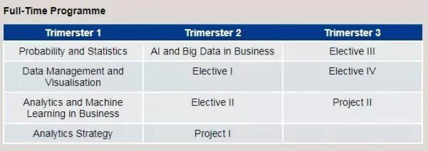 相比其他院校开设的商业分析硕士项目,南洋理工大学商业分析硕士项目对大部分跨专业申请人来说是比较友好的,在申请人背景上并没有过多硬性要求。但在这里还是建议申请人需具备比较扎实的数理基础且掌握一定的商科、金融以及计算机编程知识(如:Python,R,SQL)。